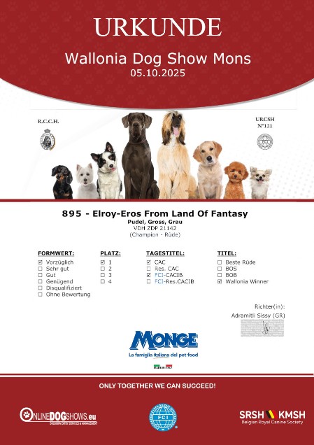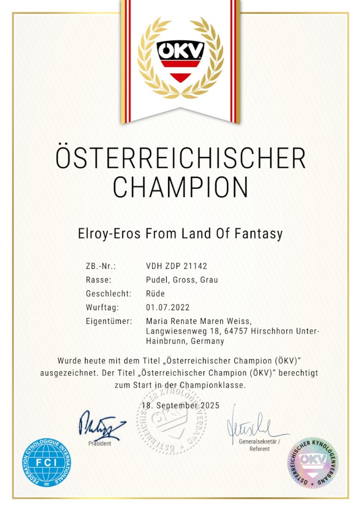 Mit dieser Anwartschaft hat Elroy die Bedingungen zum VDH Champion erfüllt.